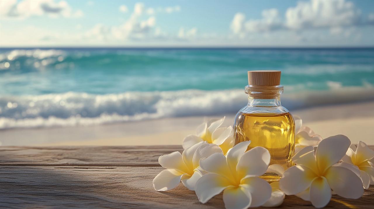 Le véritable Monoï de Tahiti possède des caractéristiques sensorielles distinctives qu'il est important de connaître. Visuellement, l'huile de monoï authentique présente une texture particulière qui se solidifie naturellement en dessous de 24 degrés Celsius, formant une masse blanche crémeuse qui redevient liquide à température ambiante. Cette particularité est due à la composition naturelle de l'huile de coprah et constitue un excellent indicateur d'authenticité. Si le produit reste liquide même au froid, cela peut signaler la présence d'additifs ou d'huiles de substitution. Sur le plan olfactif, le vrai monoï dégage un parfum floral délicat et naturel de Tiaré, sans notes synthétiques agressives ou trop sucrées. Les imitations ont souvent recours à des fragrances artificielles qui tentent de reproduire ce parfum caractéristique mais qui manquent de la subtilité et de la profondeur de l'original. Méfiez-vous des produits dont l'odeur semble trop intense ou chimique, car cela trahit généralement l'utilisation de parfums de synthèse plutôt que de véritables fleurs macérées.